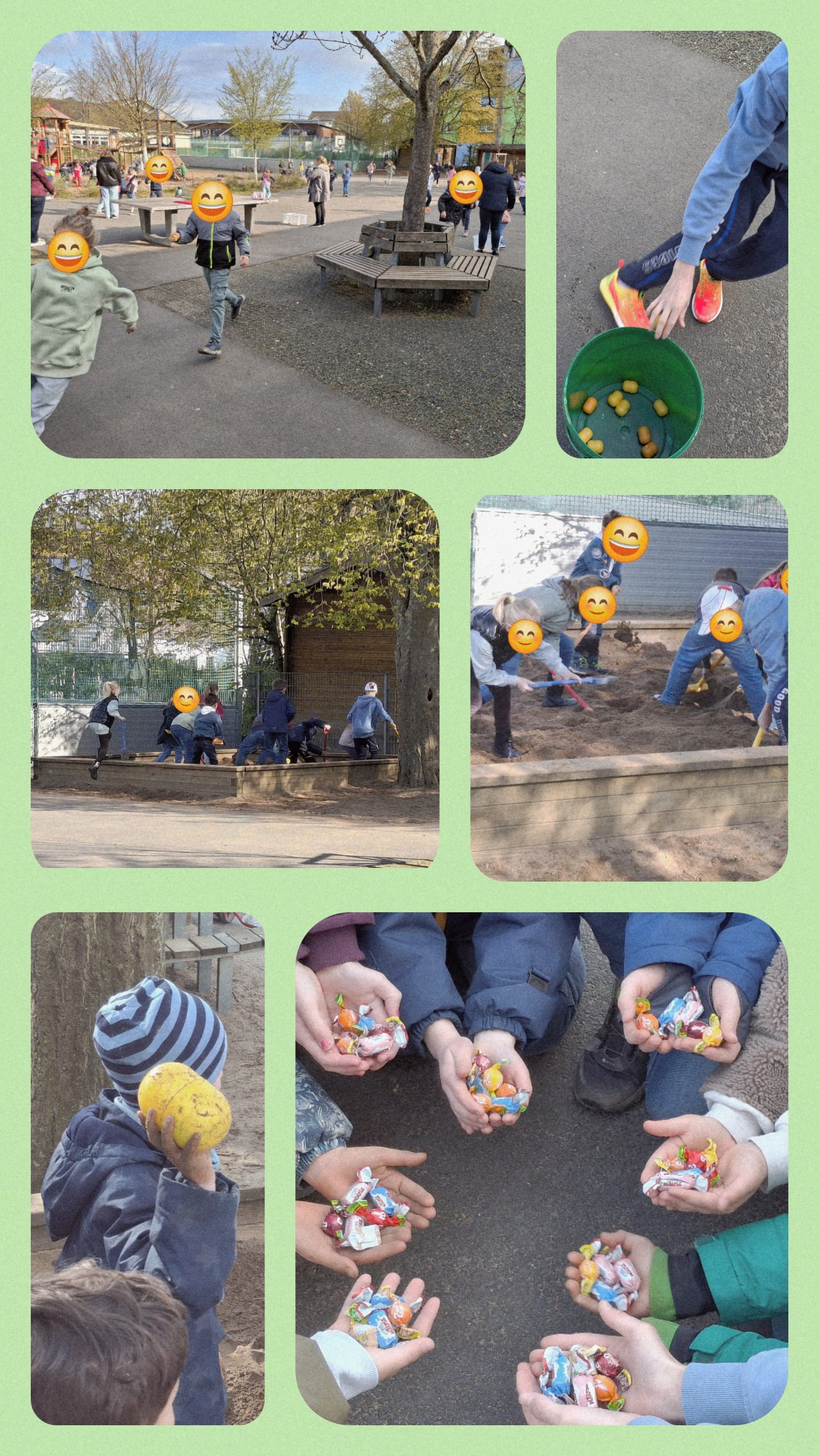 Am letzten Tag der Ferienbetreuung fand das mittlerweile zur Tradition gewordene „Ostereiersammeln“ auf dem Schulhof statt, bei dem die Kinder viel Ausdauer benötigten. Über 500 mit Süßigkeiten befüllte Ü-Eier lagen auf dem Schulhof und mussten von den zusammengestellten Gruppen eingesammelt und untereinander aufgeteilt werden. Die Herausforderung bestand darin, nur ein Ei auf einmal aufzuheben und in den Eimer des jeweiligen Spielleiters zu befördern. Dies war natürlich mit Anstrengung verbunden, bereitete den Kindern aber trotzdem viel Freude. Zusätzlich wurde ein großes Ü-Ei im Sandkasten versteckt, das erst später von einem der Kinder entdeckt wurde. Den krönenden Abschluss des Ferienprogramms bildete der Besuch eines Mitarbeitenden der Eisdiele Tormen (Hennef). Die Kinder durften sich aus insgesamt drei verschiedenen Sorten zwei Kugeln Eis im Becher aussuchen und diese anschließend auf dem Schulhof genießen. Es war erneut eine gelungene und kurzweilige Ferienzeit, die für jede Menge Spiel, Spaß und Spannung bei Kindern und Erwachsenen sorgte.